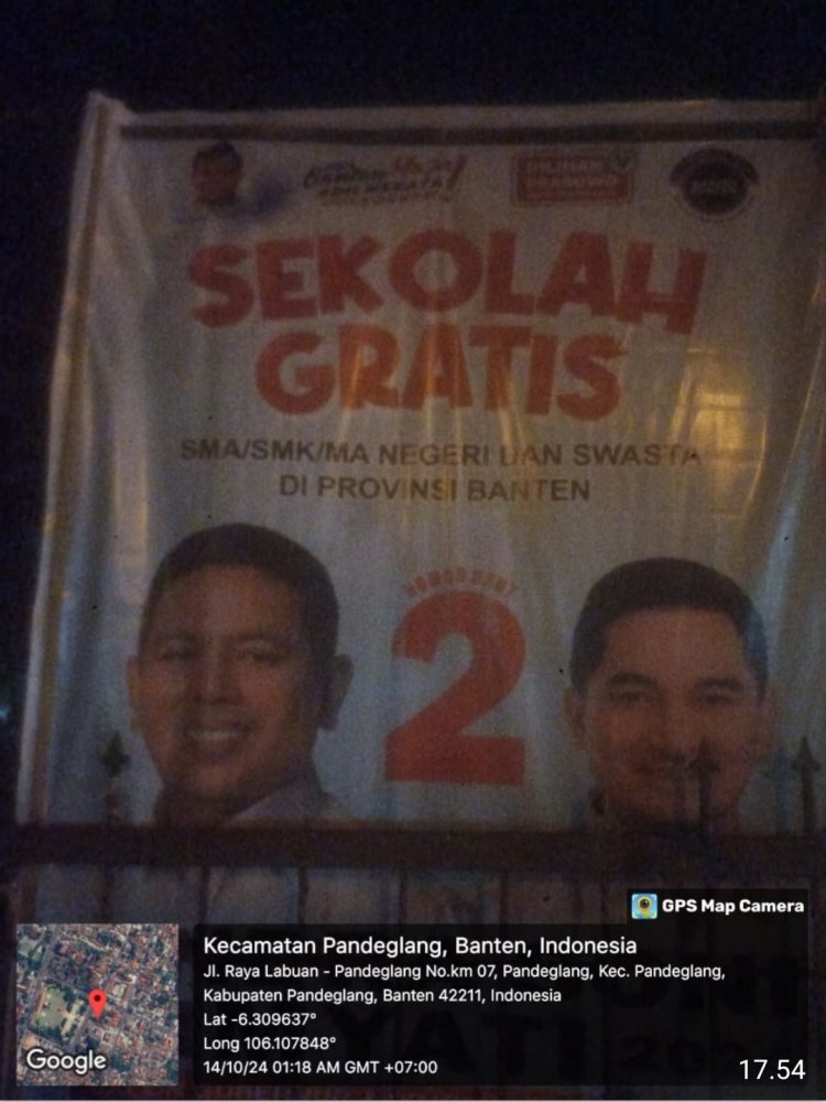 Pemasangan alat praga seperti baliho calon Gubernur Banten Andra – Dimyati bertujuan agar masyarakat Pandeglang bisa memilih pemimpin yang tidak korupsi dan memiliki misi untuk sekolah gratis baik sekolah swasta ataupun sekolah negeri yang berada di Provinsi Banten khususnya.