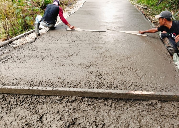 “Pembangunan jalan cor beton tahun ini merupakan hasil kesepakatan melalui Musdes. Dan Alhamdulilah pembangunan Jalan dengan cor beton tersebut sedang dilaksanakan,“ terangnya.
