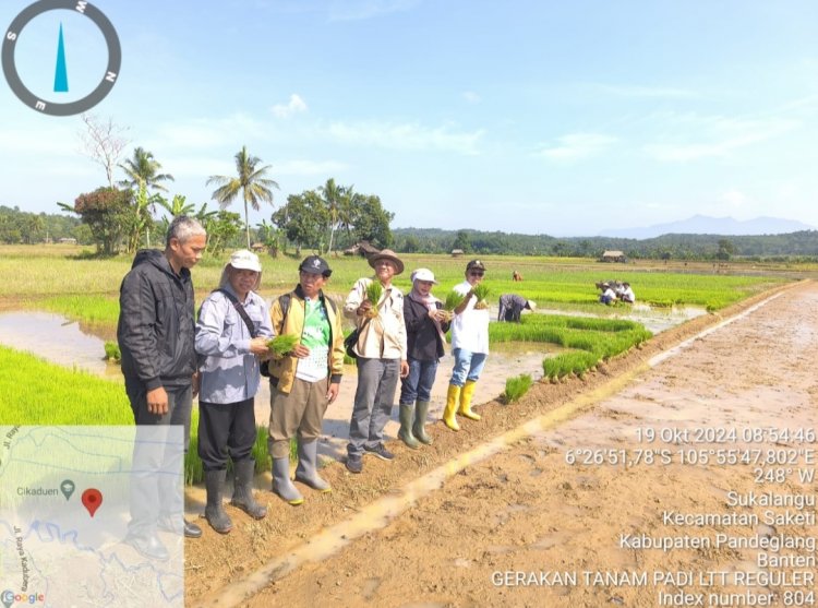 Dalam kunjungannya, Kepala BBOPT yang didampingi Kepala Bidang Tanaman Pangan dan Holtikultura (TPH) Dinas Pertanian dan Ketahana Pangan Kabupaten Pandeglang, Nuridawati, melakukan tanam padi Kelompok Tani (Poktan) Sri Clay Desa Sukalangu Kecamatan Saketi Kabupaten Pandeglang Banten.