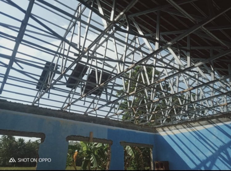 Perlu digarisbawahi, rehab Ruang kelas yang menghabiskan Anggaran ratusa juta dari dari DAU-SG 2025 diperbolehkan memakai material bekas, terlihat Rangka Baja Ringan sudah berkarat.